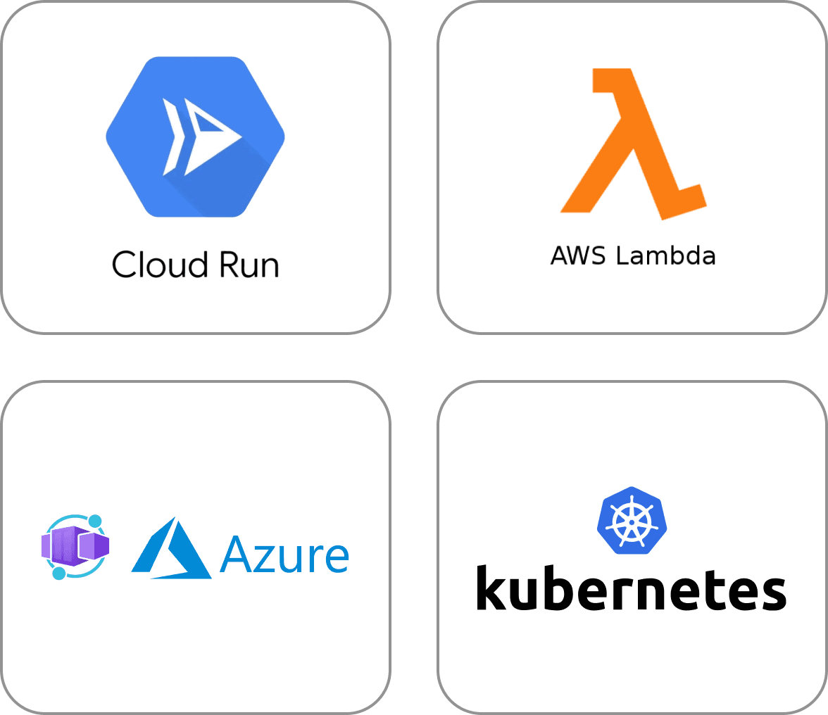 Pre‑built agent frameworks ready for quick deployment to your AWS, GCP and Azure cloud infrastructure.